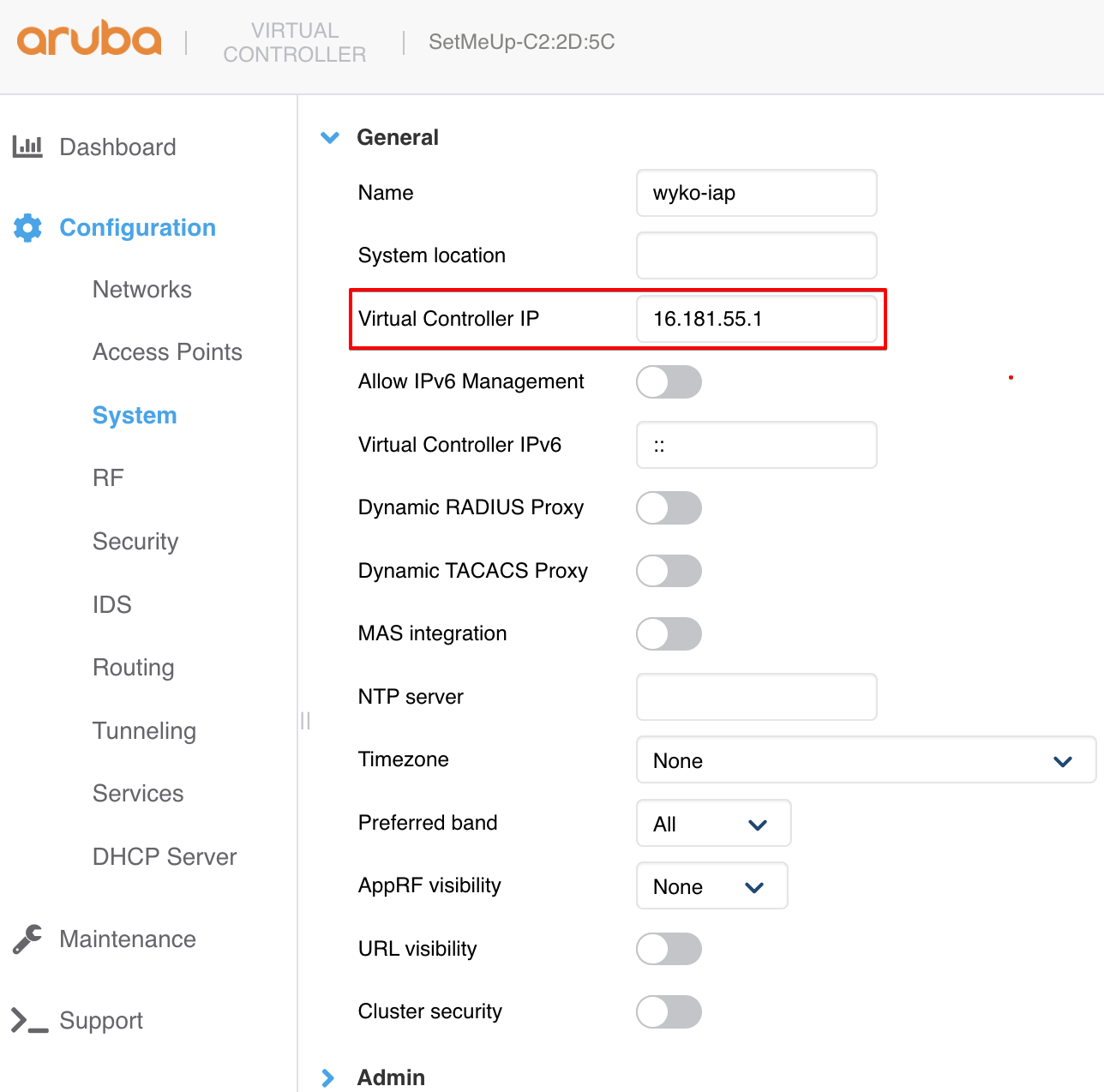 - configuration -> system -> general -> virtual controller ip -> 0.0.0.0