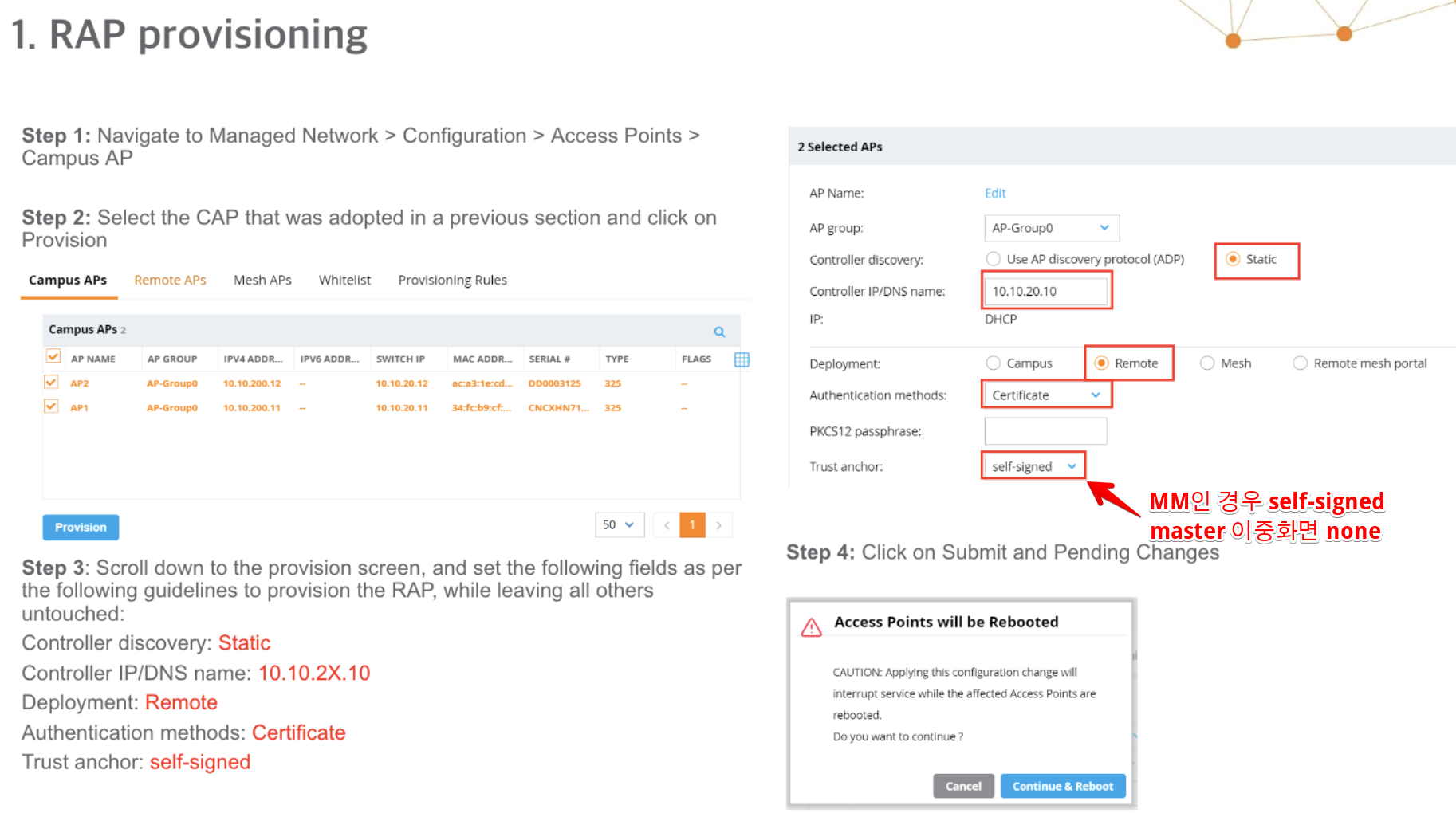 - RAP의 IP 설정은 MM의 클러스터 환경 + AP가 NAT 환경을 사용할때 IP 사용