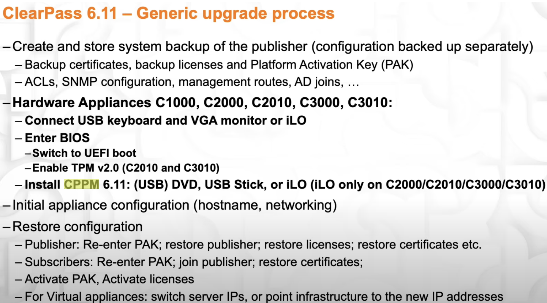 -> Clearpass 6.11의 동작 및 운영에 문제는 없으나 서버에 대한 업그레이드 및 업데이트는 불가능